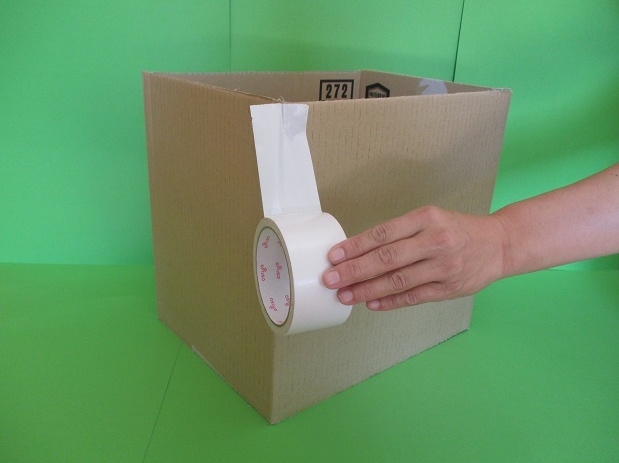③ 手で持ちやすいように、向かい合う面の上部に各面2か所ずつ穴を開けて 紐の取っ手を付けると出来上がり。