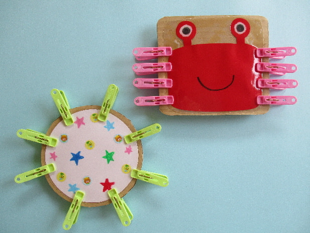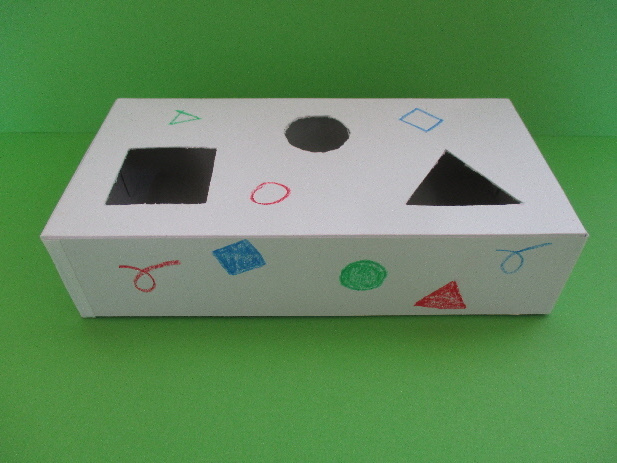 ・ティッシュの箱 ・はさみ ・ビニールテープ ・段ボール ・紙 ・のり ・ペットボトルのフタ・クレヨン(またはペン