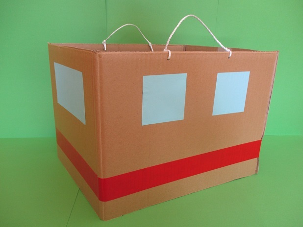 ・段ボール ・ガムテープ ・クレヨン(マーカー) ・紐