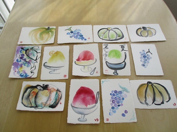 ☆俳画でオリジナル絵ハガキを作りましょう。
